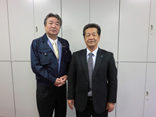 | 写真1:「貝毒やノロウィルス、放射性物質の徹底した検査を行ない、安心・安全なものだけを提供しています」丹野一雄会長(右)と阿部誠理事。 |