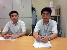 写真1:石巻市福祉部生活再建支援課の今野善浩さん(右)と佐藤靖記さん。