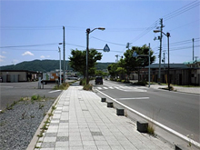 道を挟んで並ぶ大橋地区の仮設団地。