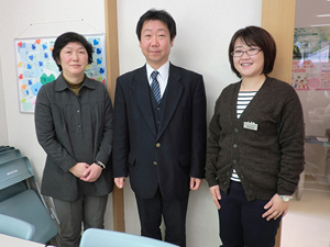 「地域の住民が主体となって動けるようサポートしていきたい」と気仙沼市社会福祉協議会ボランティアセンターの阿部陽子さん(右)、畠山隆弘所長、齋藤貴恵さん。