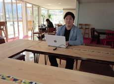 | ▲「女川町の魅力は人と自然の近さ」と話す後藤大輝さん。アスヘノキボウが拠点をおく「女川フューチャーセンターCamass」はコワーキングスペースとして利用されています。 |