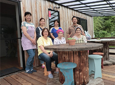 | ▲ゆめハウスのテラスで「うみねこ」の皆さん。「高白浜は小さな集落ですがここから大きなものを生むこともできる」と八木さん(前列左端) |